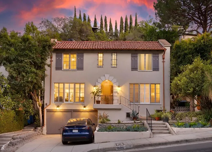 Diese Villa in Los Angeles befindet sich im Stadtviertel Hollywood, in etwa 500 Meter Entfernung vom Hollywood Heritage Museum und in ungefähr 15 Gehminuten Entfernung vom TCL Chinese Theatre. Zu den kulturellen Sehenswürdigkeiten in der Nähe gehört die La Brea Teergruben, der 6 Kilometer von ist. Zu den weiteren Attraktionen in der Nähe zählt das Hollywood Bowl Museum (circa 7 Gehminuten von der Unterkunft entfernt).